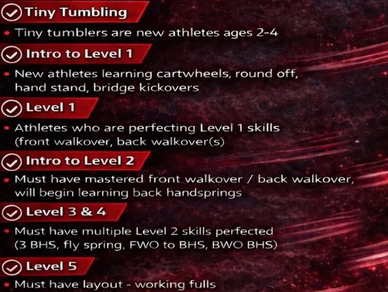 We have competitive cheer teams for ages 3 to 18 that will travel between Oklahoma and Texas for competitions!